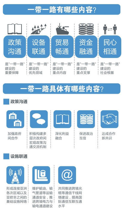 “一(yī)帶一路”建設是一項係統工程,要(yào)堅持共商、共建、共享原則(zé),積極推進沿線國家發展戰略的(de)相互對(duì)接。為推進實施“一帶一路”重大倡議,讓古絲綢之路煥發新(xīn)的生機活力,以(yǐ)新的(de)形式使亞(yà)歐非(fēi)各國聯係更加緊密,互利合作邁向新(xīn)的曆史高度,中國政府特製定(dìng)並發布《推動共建絲綢之路經濟帶和21世紀海上絲綢之路的(de)願景與行動》。