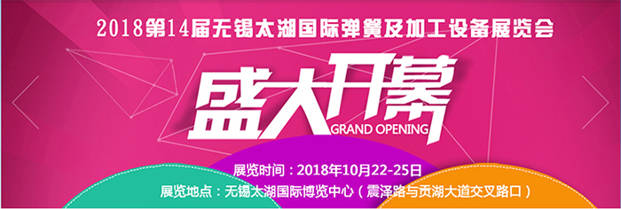 各(gè)位新老客戶2018第十四屆無錫太湖(hú)國際彈簧及加(jiā)工設備展覽會將於時間:(2018.10.22 ---10.25)在無錫太(tài)湖國際博覽中心舉辦。屆時將吸引來自世界五大洲的彈簧行業精(jīng)英人士共同(tóng)研究、探討彈簧行業的發展,同時來自德國、日本、 中國(guó)(香港、台灣、內地)的200家彈簧設(shè)備製造廠家將展示(shì)他們(men)前沿的彈簧製造技術(shù)。在此,91av在线免费观看熱烈歡迎國內外彈(dàn)簧生(shēng)產、 製造及汽車配件製造相關行業的客商光臨91av在线免费观看(téng)展位(展位號:B1-01),共同為推動中國彈簧製造工業的發展而努力!