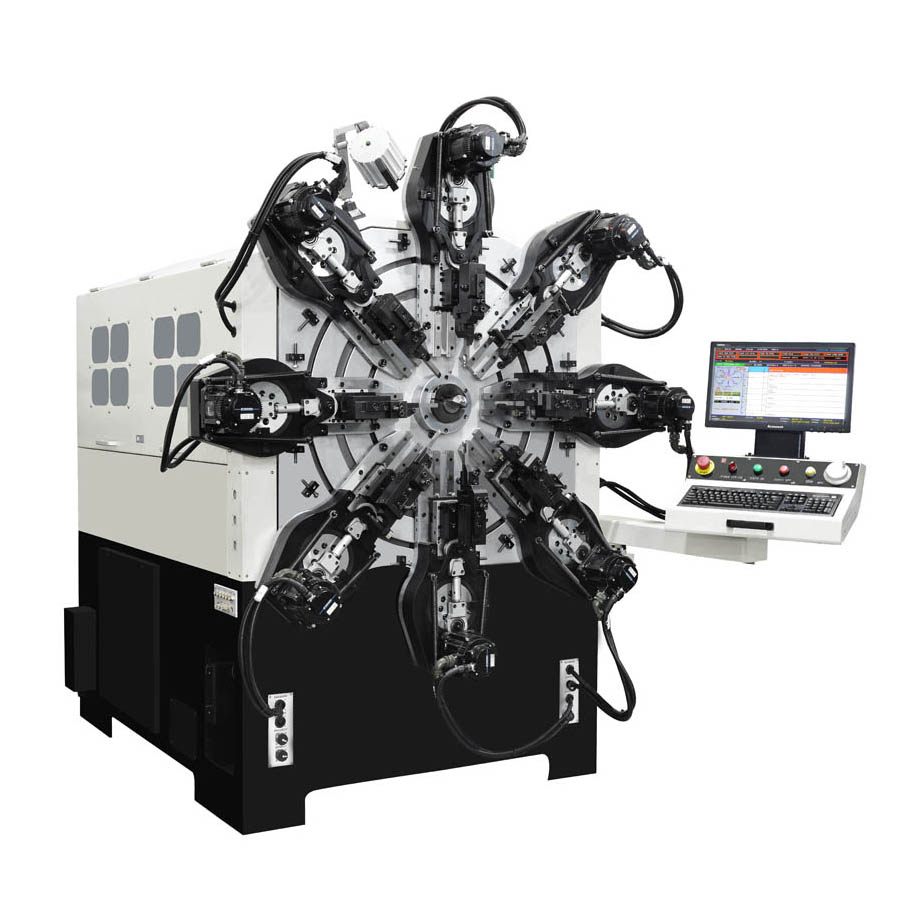 • Spec: Special camless design equipped with Vinston’s free arm technolgy that enables our series of spring machines to easily produce all kinds of difficult springs that is 30% or more efficient than traditional cam type spring former.