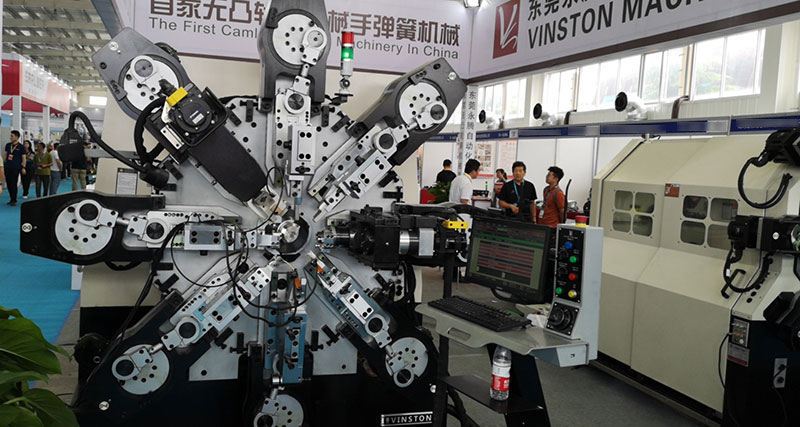 參展商與91av在线免费观看展(zhǎn)廳工(gōng)作人員詳細了解彈簧機性能。